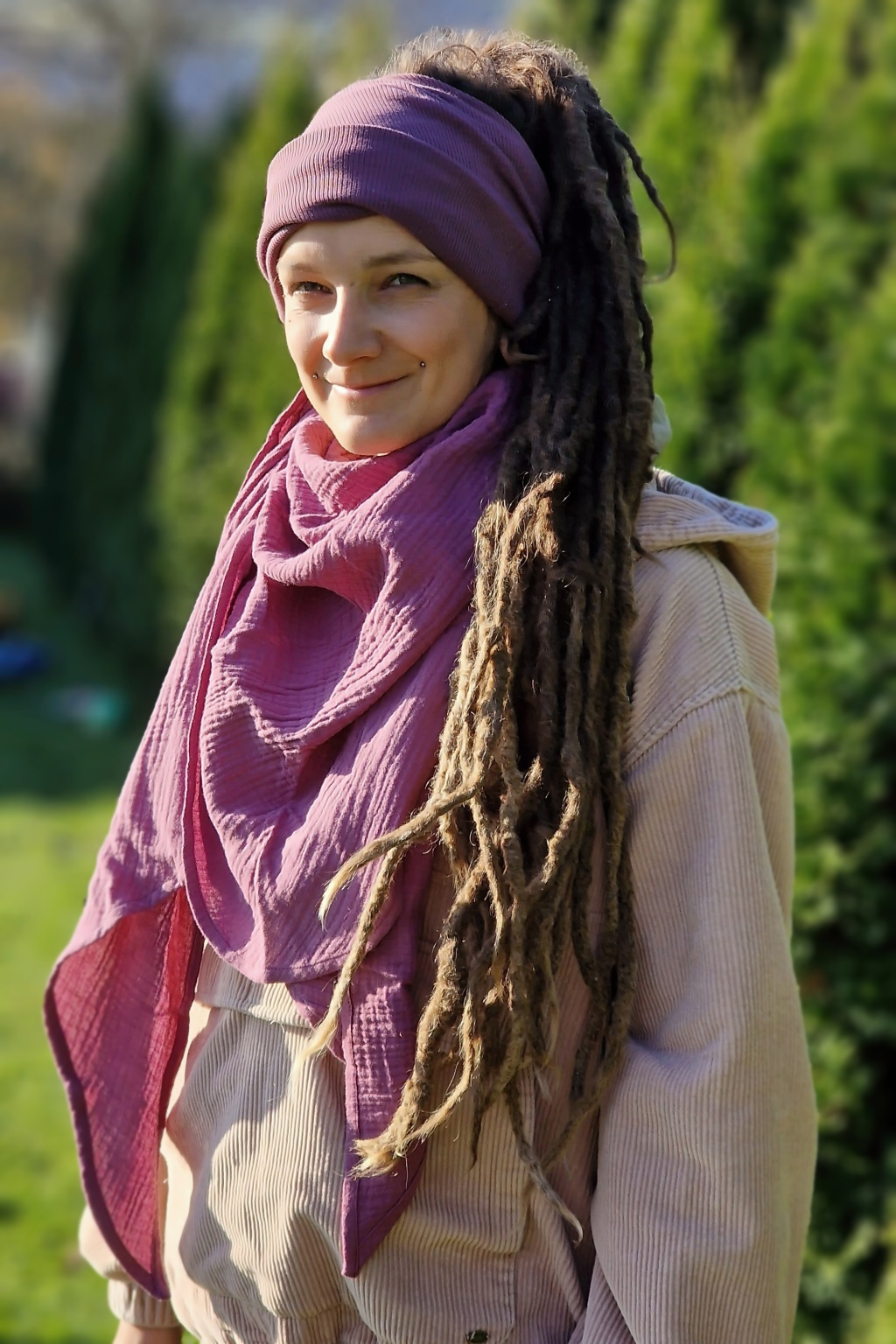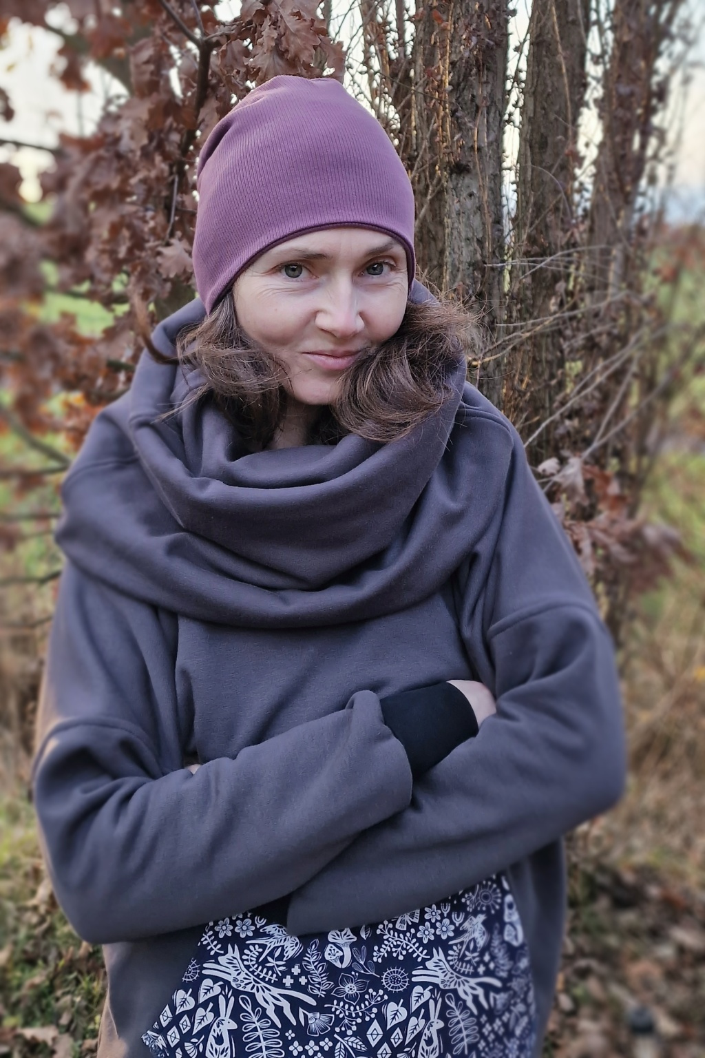 - nahoře je čepice jen zatočená= otevřená – geniální detail, díky kterému můžeš vlasy protáhnout ven
