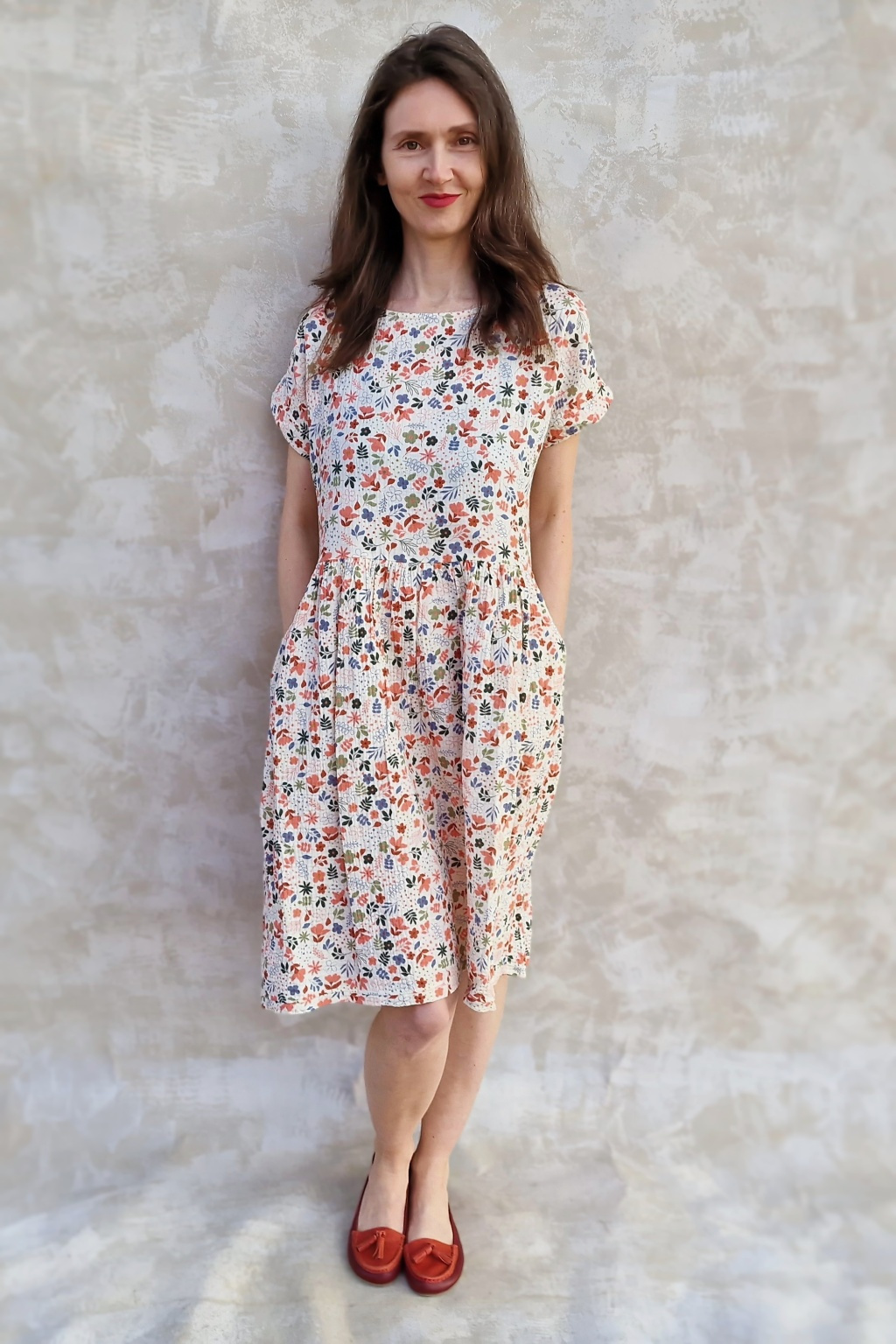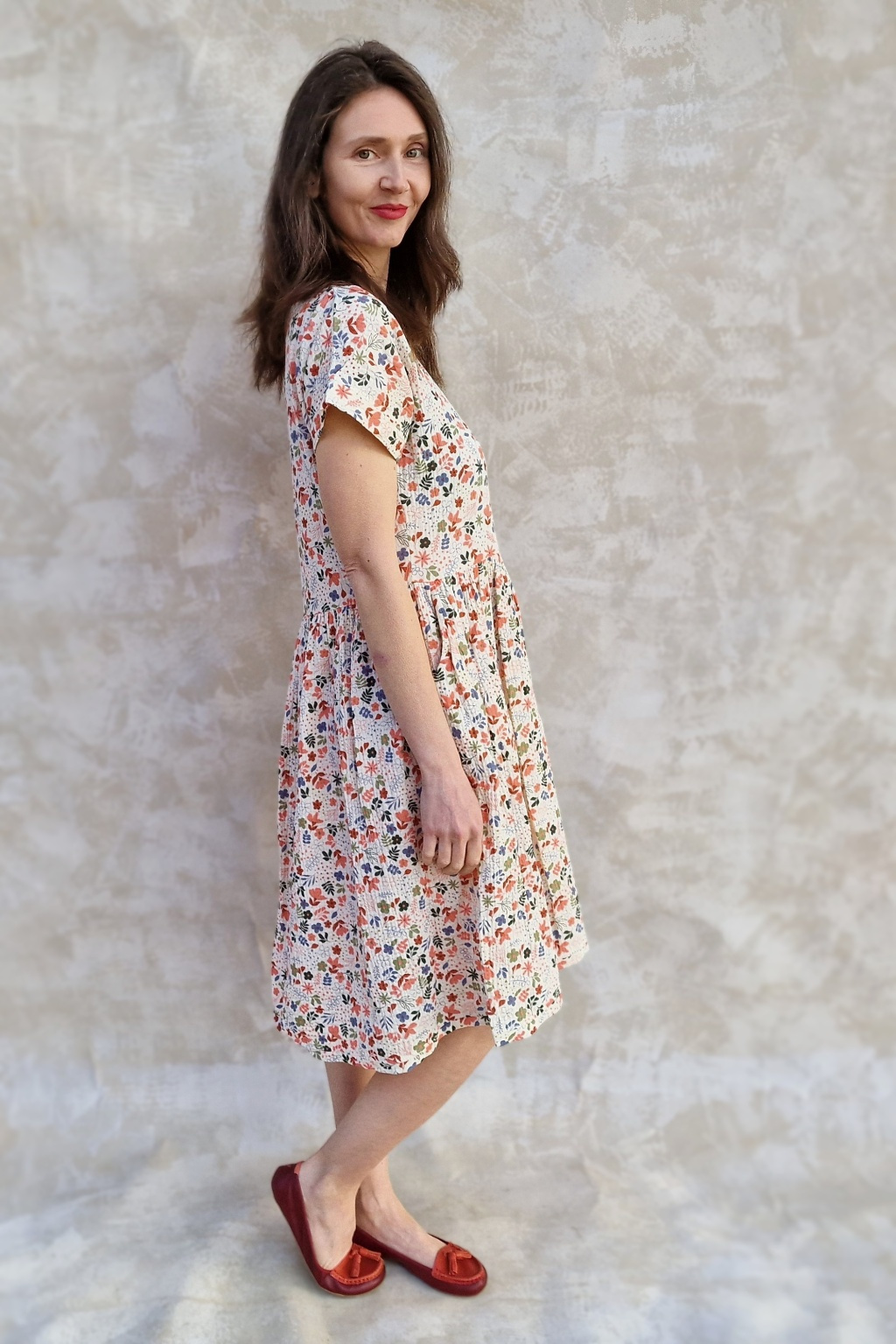 Šaty jsou z bavlněného mušelínu, který je na kůži a nošení tááák příjemný a měkký.