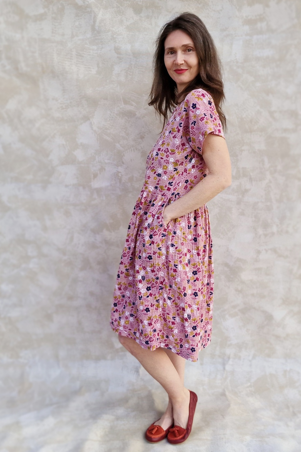 Šaty jsou z bavlněného mušelínu, který je na kůži a nošení tááák příjemný a měkký.