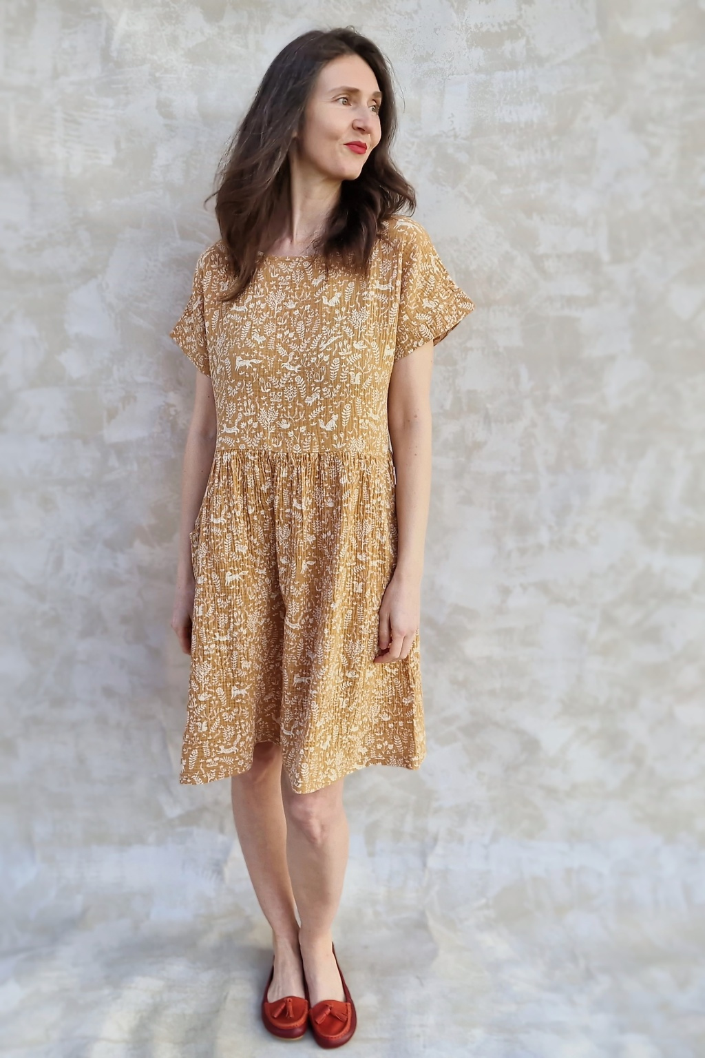 Šaty jsou z bavlněného mušelínu, který je na kůži a nošení tááák příjemný a měkký.