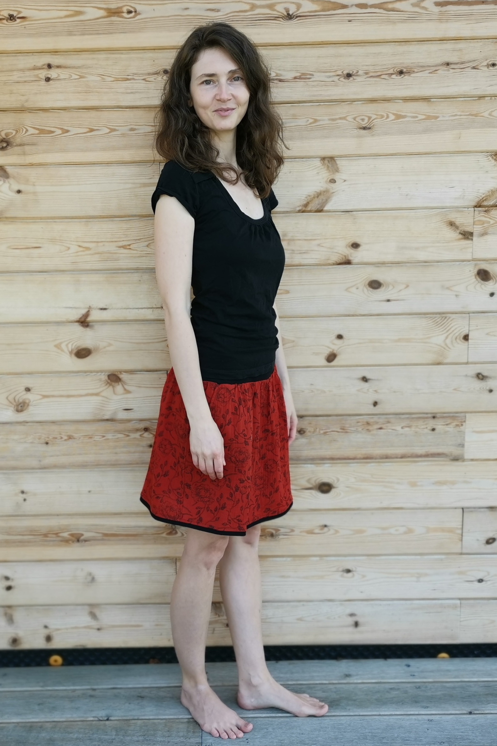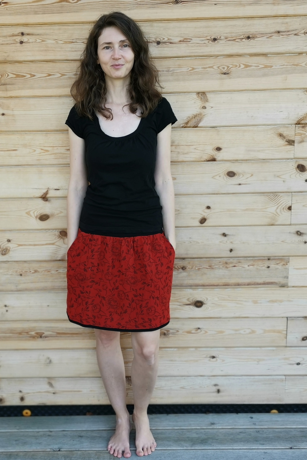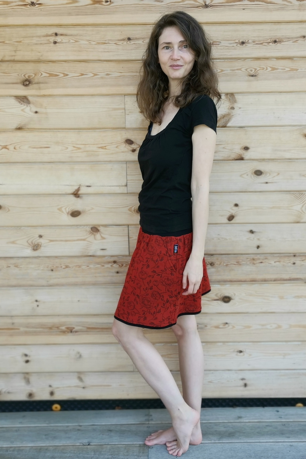 - Sukně je ušitá v jednoduchém áčkovém střihu, který sluší všem posatvám.