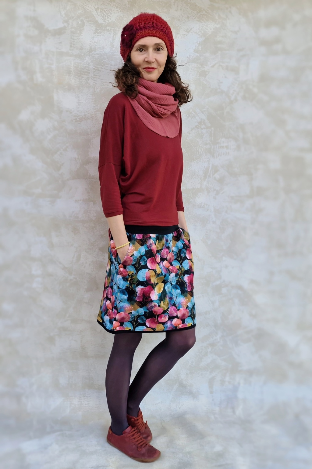 Sukně je navržená a ušitá v České republice s důrazem na kvalitu a udržitelnost.