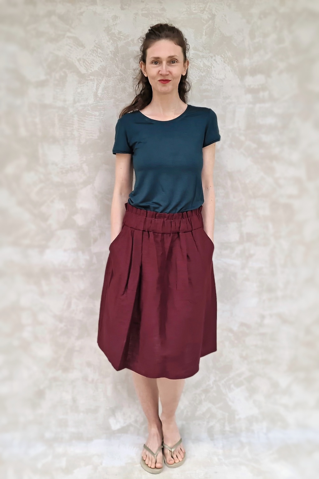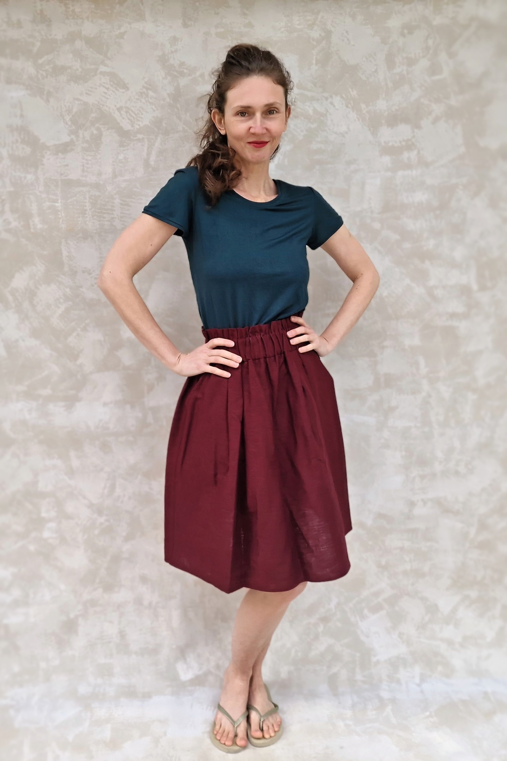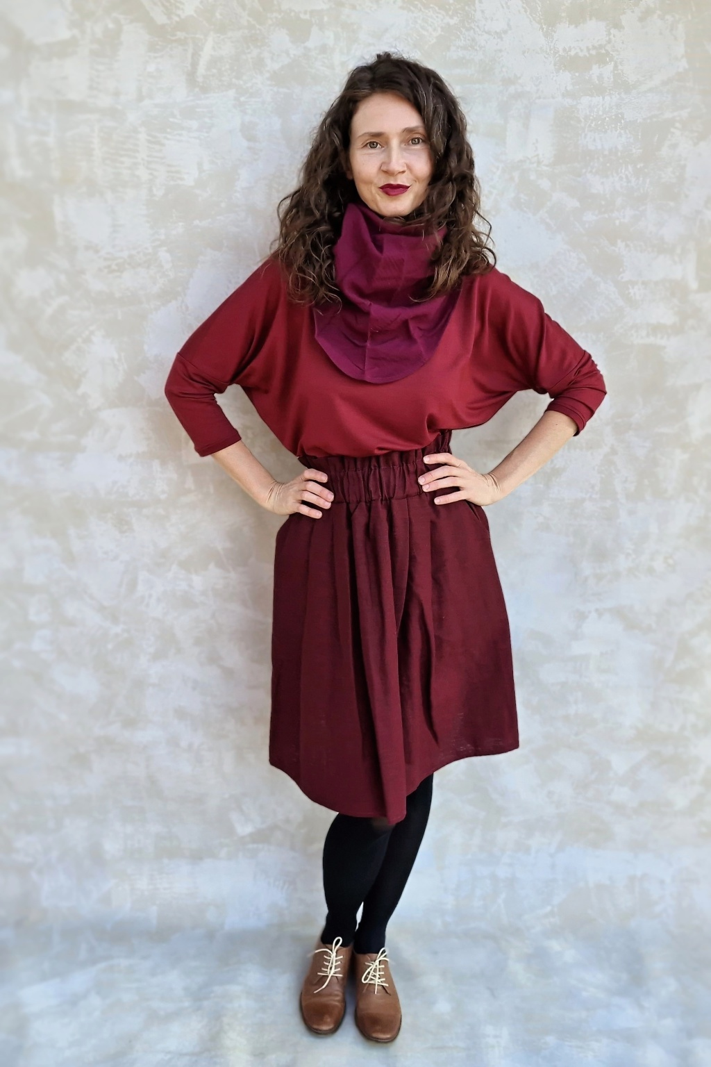Sukně je naprosto dokonalá! Trošku jsem se bála toho nařasení v pase, aby to nedělalo bříško, ale nedělá - přijde mi, že ho to spíš zmenšuje :-) Sedí perfektně, je kvalitně ušitá, z úžasného materiálu. Prostě pecka :-)