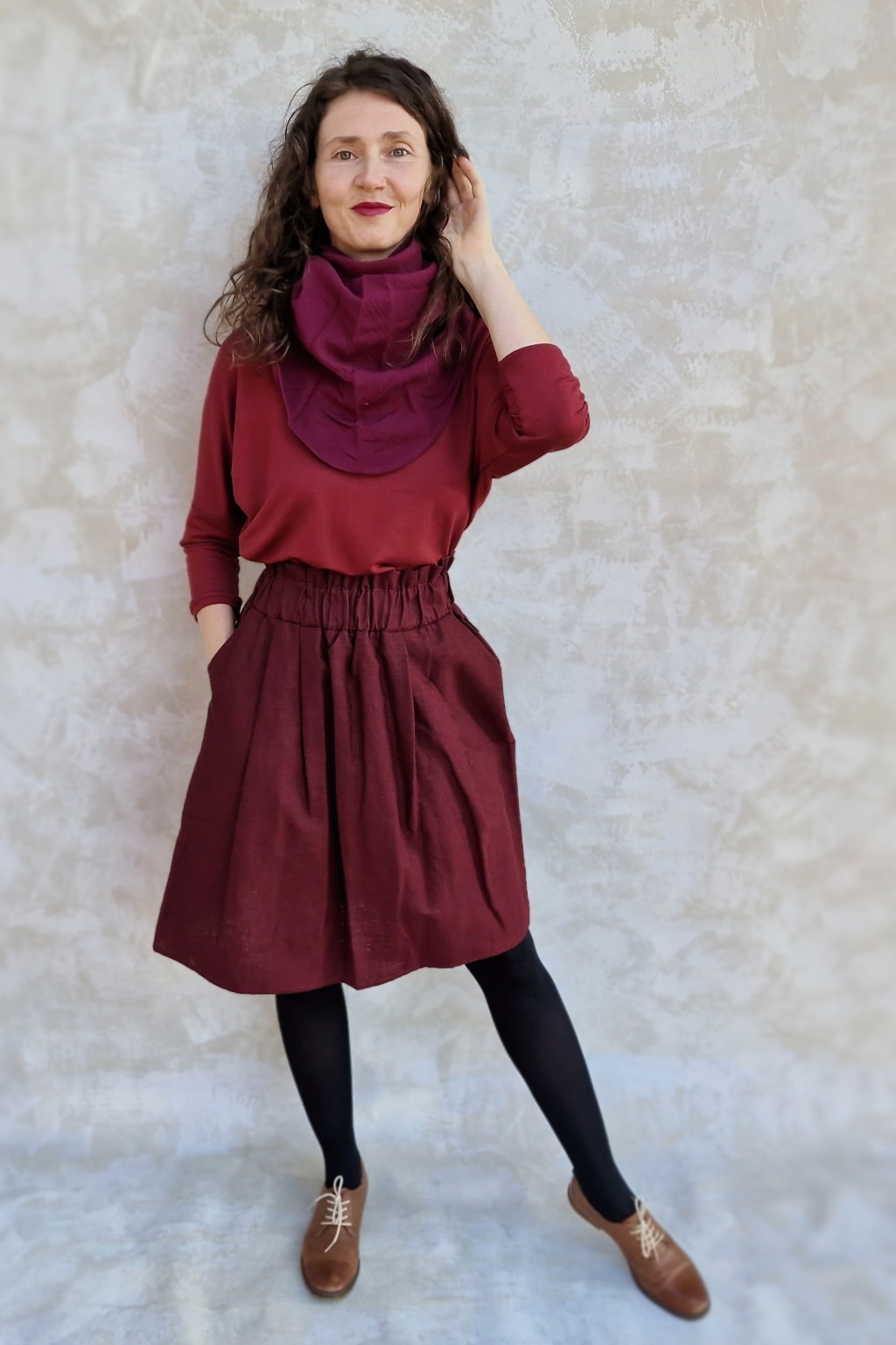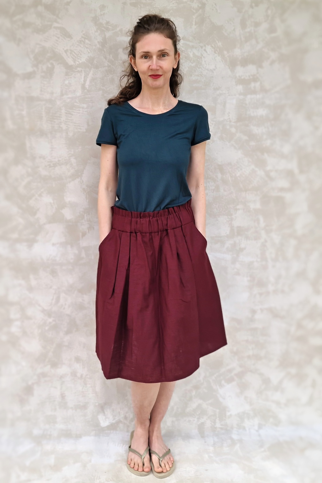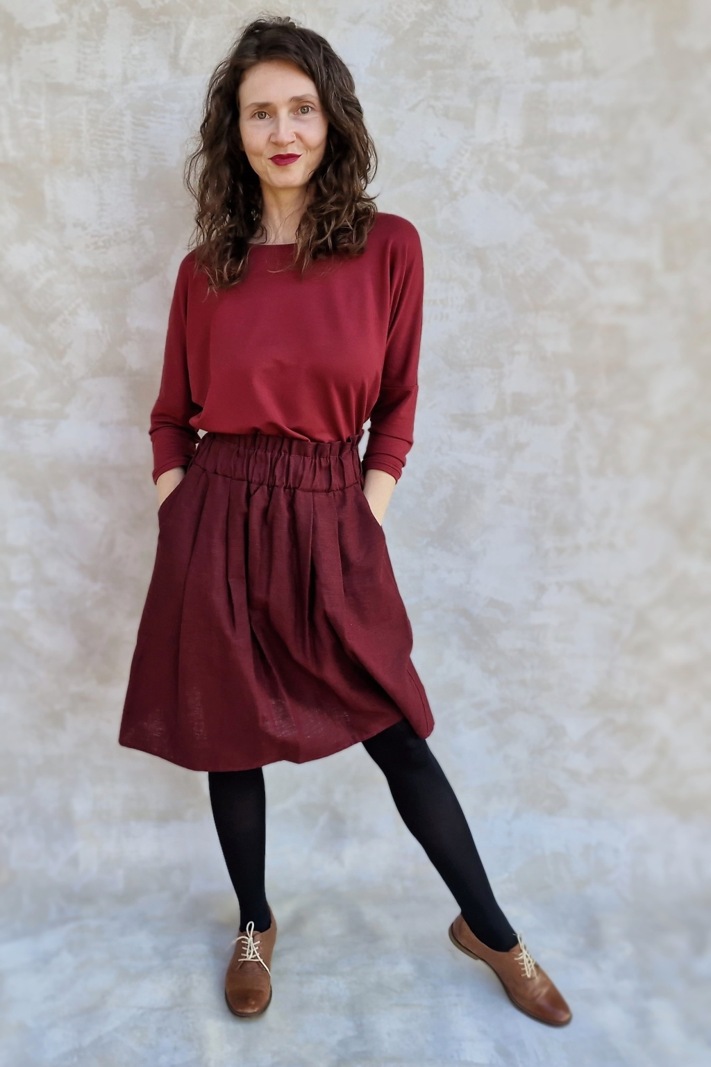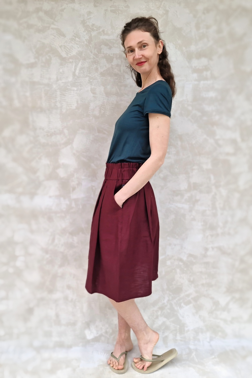 Sukně je naprosto dokonalá! Trošku jsem se bála toho nařasení v pase, aby to nedělalo bříško, ale nedělá - přijde mi, že ho to spíš zmenšuje :-) Sedí perfektně, je kvalitně ušitá, z úžasného materiálu. Prostě pecka :-)