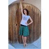 - Sukně je ušitá z potištěné bavlny půlkolového střihu.